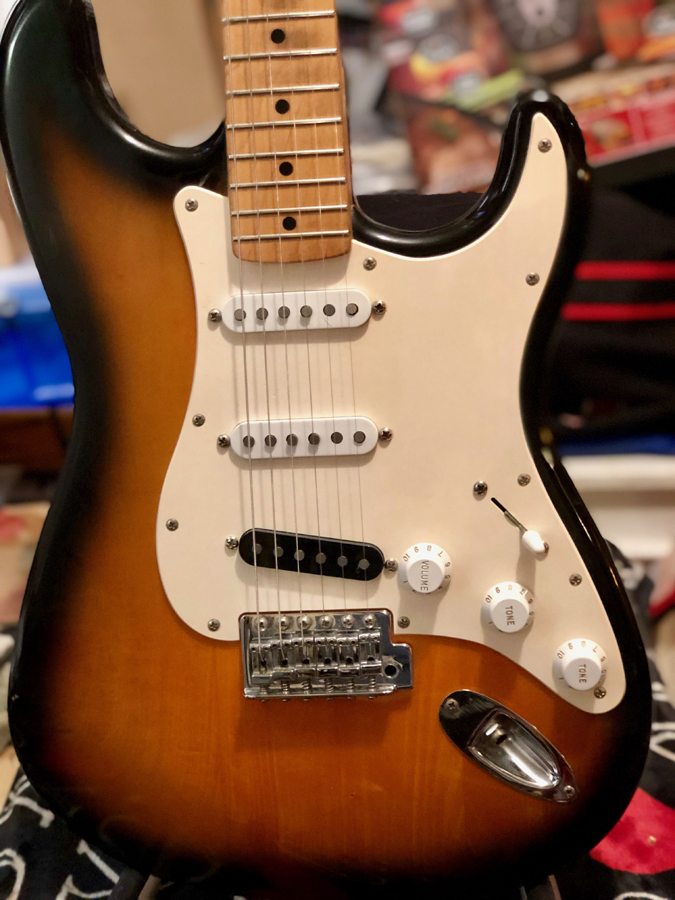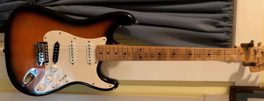 This is a sweet playing and sounding axe, with plenty of bite in the bridge pickup (Arturo thinks he put a DiMarzio in there). Shine on, you crazy Squire!