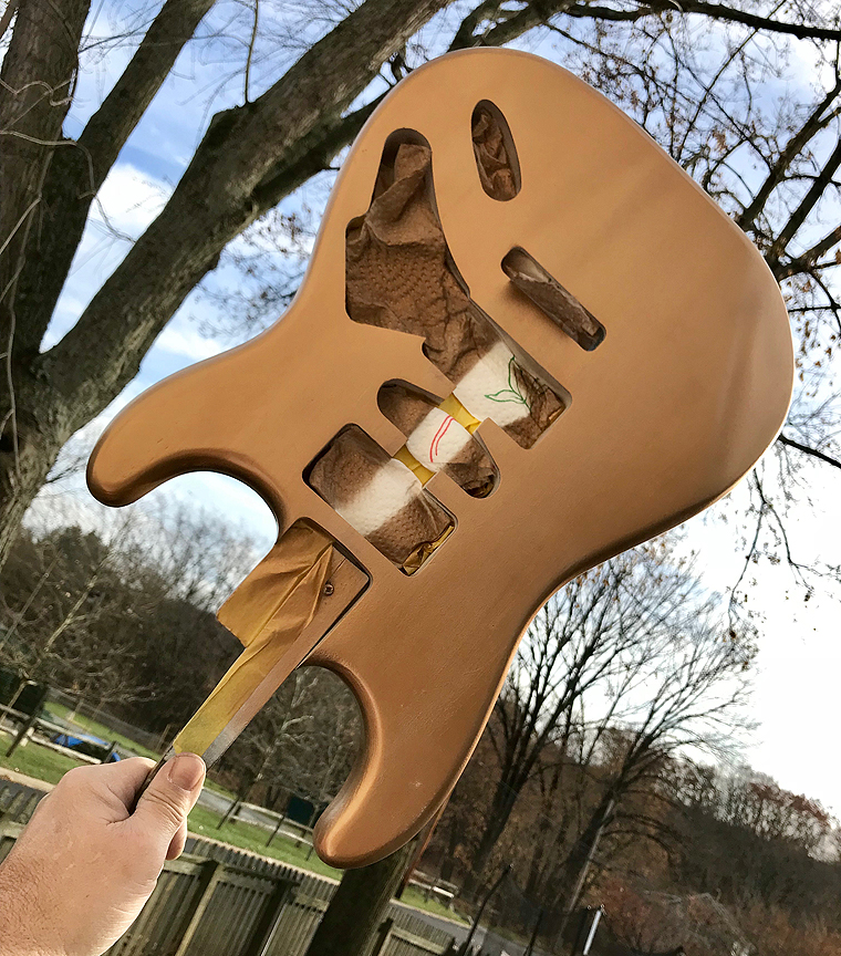 Goldie’s basswood body to covered with several layers of genuine Gibson Goldtop paint (the same finished featured on Marybeth Goldtop), and finished with a light clear coat, giving her a deep, gorgeous golden glow.