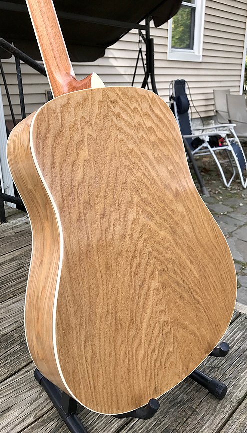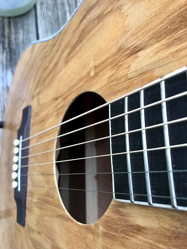 Oh, Ashley! Your hypnotic swirl and haunting tones enchant us! Ashley is a very special girl, the first acoustic guitar It’s Your Guitar has ever produced. We’re quite pleased with how she turned out! She’s not flawless, but this burl ash beauty sounds and plays like a dream!