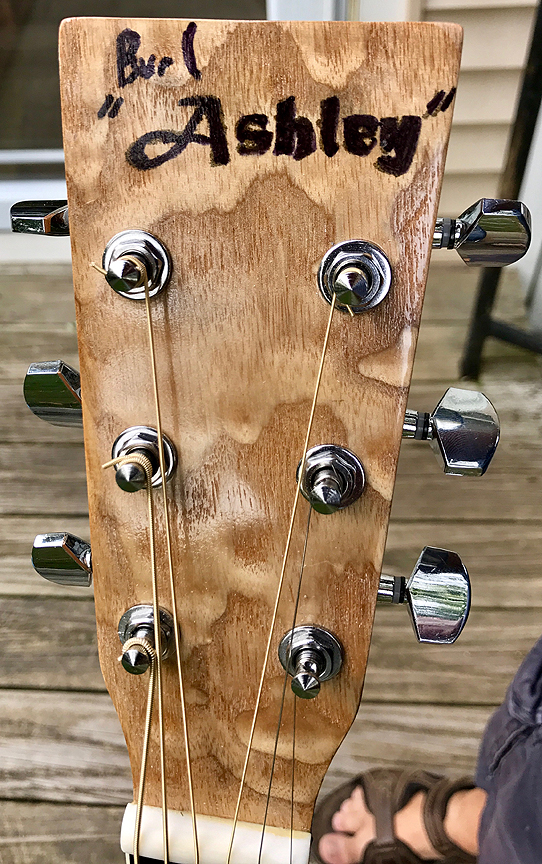 Ashley…Burl Ashley! There’s plenty of room for your signature or logo on the headstock. After all, It’s Your Guitar! (Hey, get your fat foot out of the picture!)