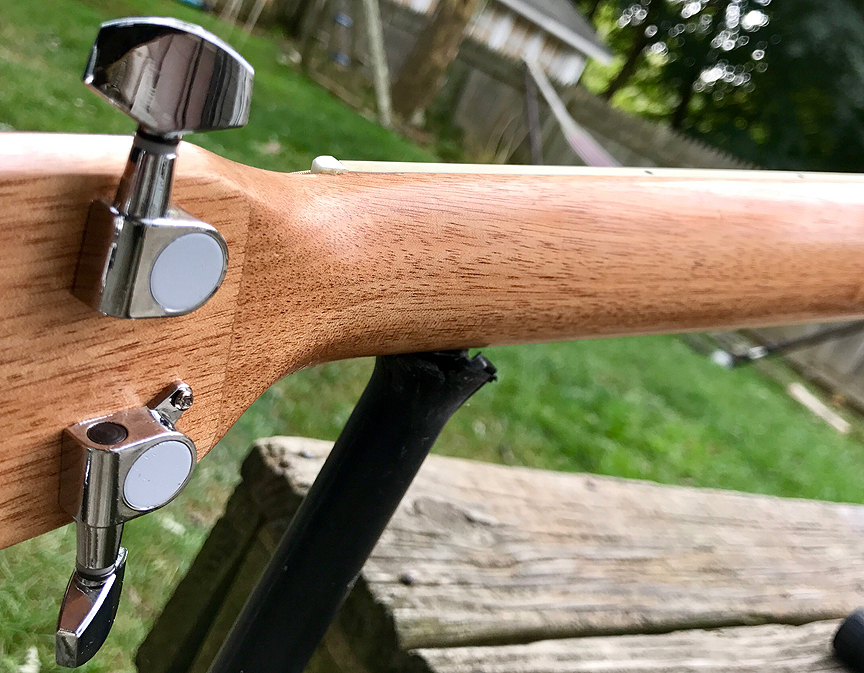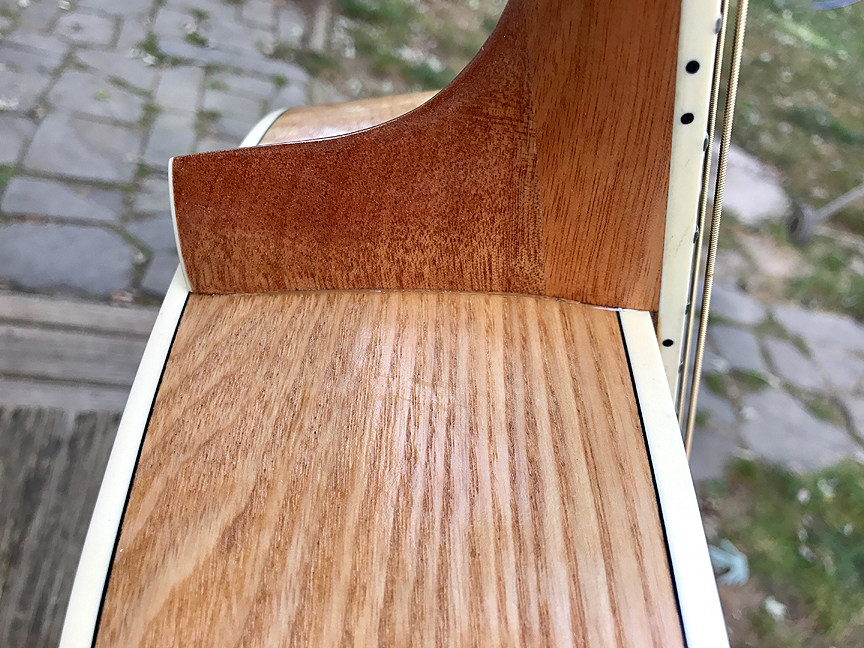 Ashley challenged us every step of the way, from her snug neck joint, to her “just a hair off” bridge placement. (Ashley’s intonation is a tiny, tiny bit sharp above the 12th fret, but if you use a light touch her notes stay true all the way up the neck.)