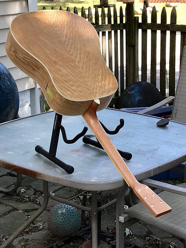 - Ashley’s nato neck is thin and fast. It’s got a light coat of stain, but is otherwise unfinished.