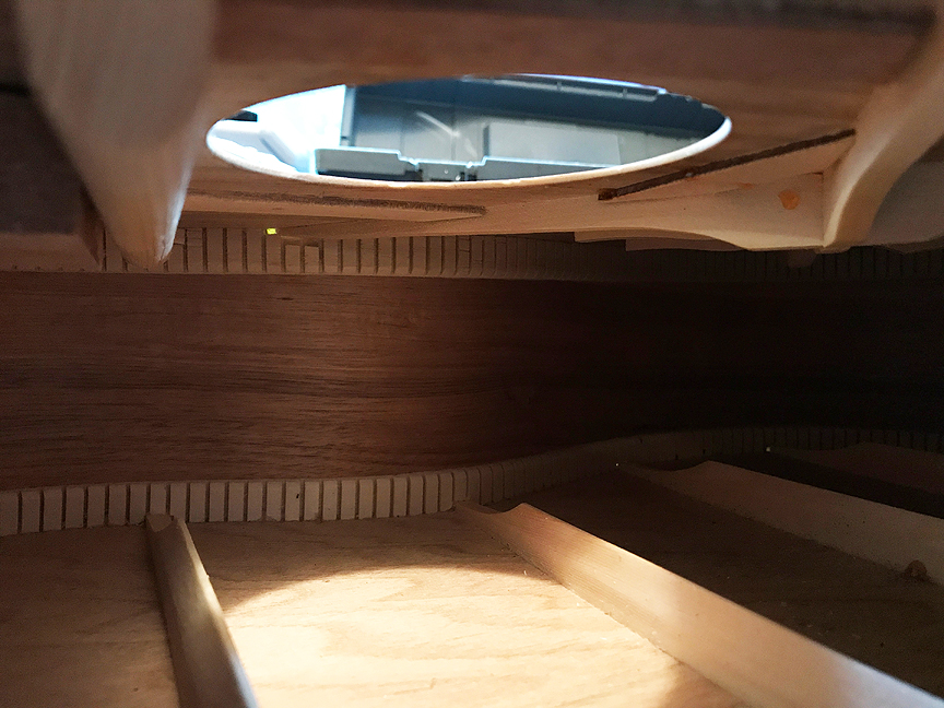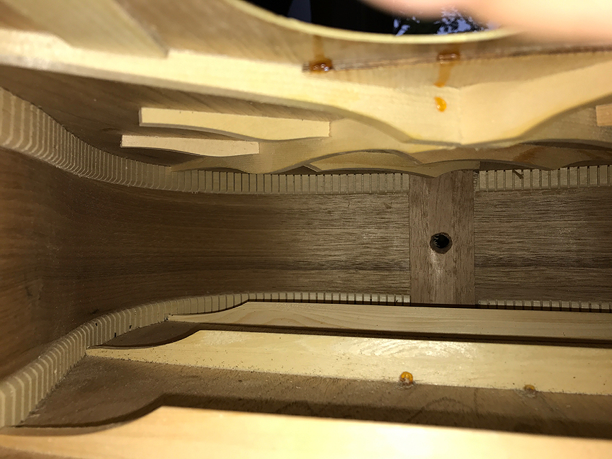 - A peek inside Ashley. The ribs and bracing look solid except for a few glue drips.