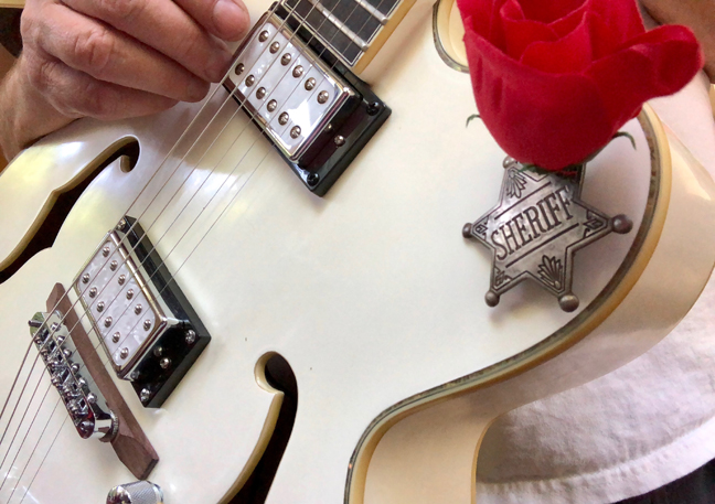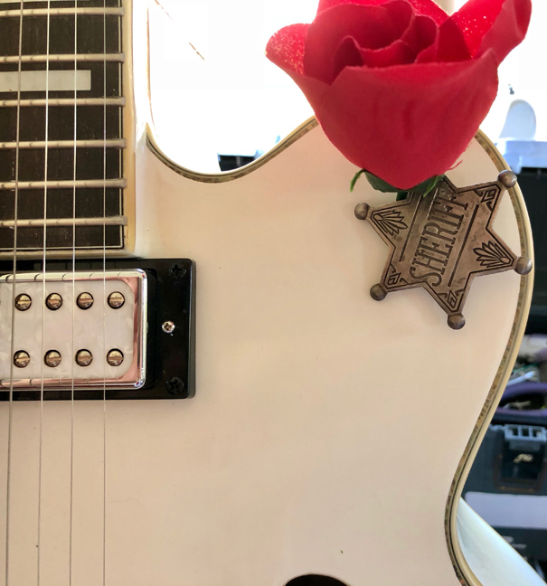 Sheriff Rose’s badge is the real deal, a heavy brass replica of the type of badge worn by T. Jeff Carr, first Sheriff of Laramie County, Wyoming, who arrested Jack McCall, the man who murdered Wild Bill Hickock. ADDED BONUS: Sheriff Rose comes with this handcrafted sheriff’s strap designed by guitar great Earl Slick. Sheriff Rose looks as cool as she sounds!